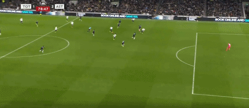 第45+3分鐘,布恩迪亞腳后跟做球,羅杰斯破門,維拉2-0熱刺