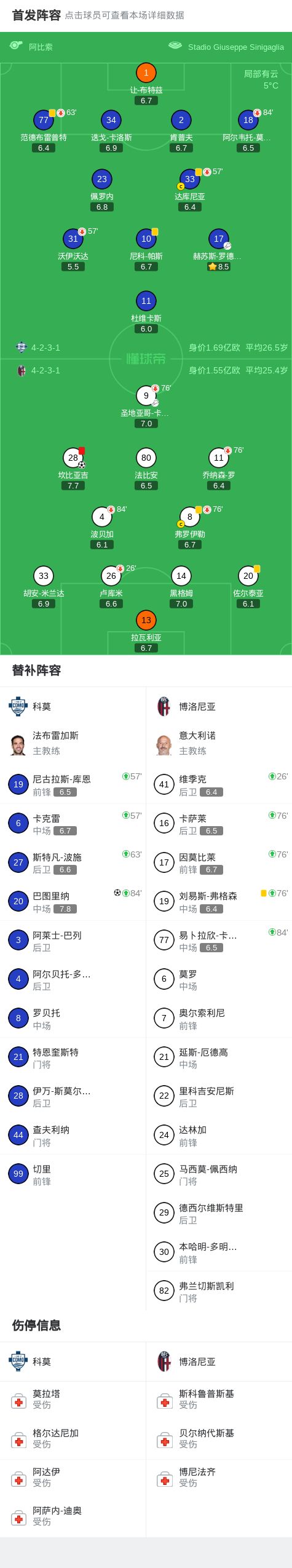 第49分鐘,打破僵局,卡斯特羅助攻坎比亞吉破門,博洛尼亞1-0