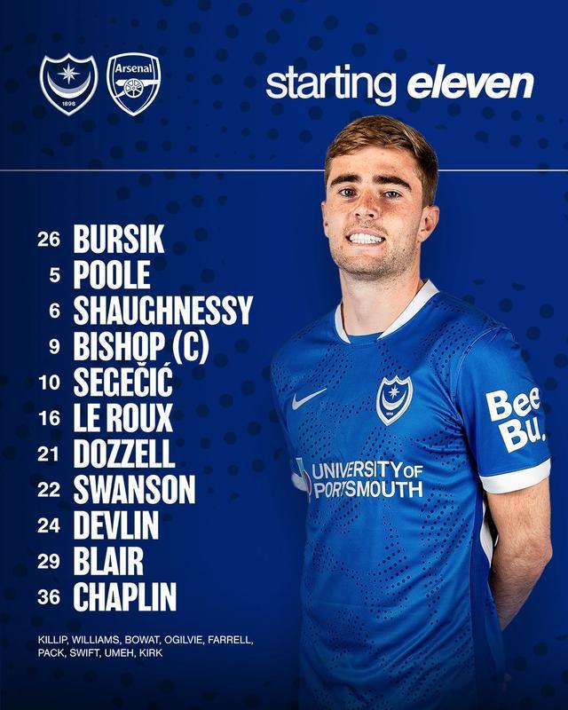 樸茨茅斯首發(fā):26-布爾西克、24-德夫林、22-斯旺森、6-肖內(nèi)西、5-普爾、16-勒魯、21-多澤爾、29-布萊爾、10-塞格契奇、36-查普林、9-畢曉普