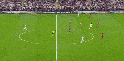 在上賽季的西超杯決賽,巴塞羅那5-2送給銀河戰(zhàn)艦一場恥辱性的失利問鼎冠軍,為了能夠?qū)崿F(xiàn)衛(wèi)冕的目標(biāo),弗里克此役也是毫無保留,祭出了433的體系,霍安加西亞鎮(zhèn)守龍門,巴爾德、加西亞、庫巴西和孔德構(gòu)筑后防,佩德里、德容和費(fèi)爾明坐鎮(zhèn)中場,拉菲尼亞、萊萬和亞馬爾組成進(jìn)攻三叉戟。