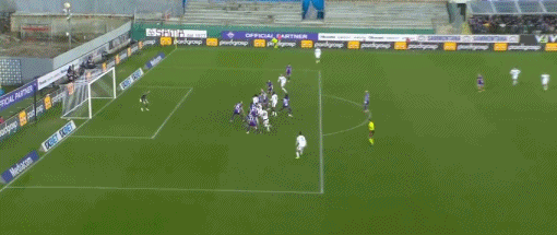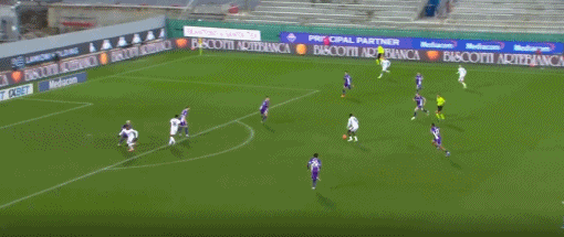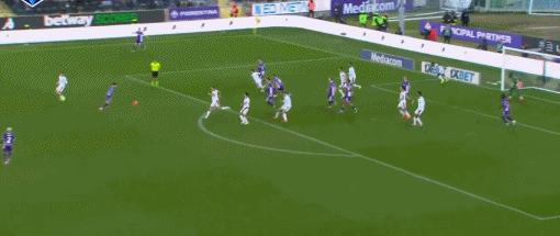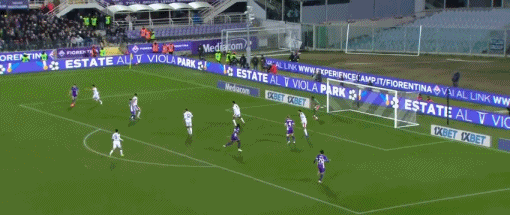 第66分鐘,古德蒙德松開出角球,科穆佐頭球破門,佛羅倫薩1-0米蘭