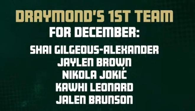 不選庫里?追夢評12月最佳陣:SGA&布朗&約基奇&小卡&布倫森